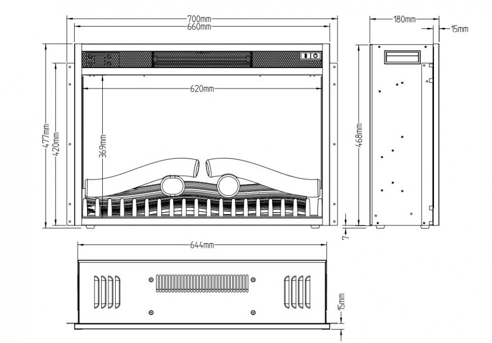 Trimline 180E Solus Front Elektrisk peisinnsats