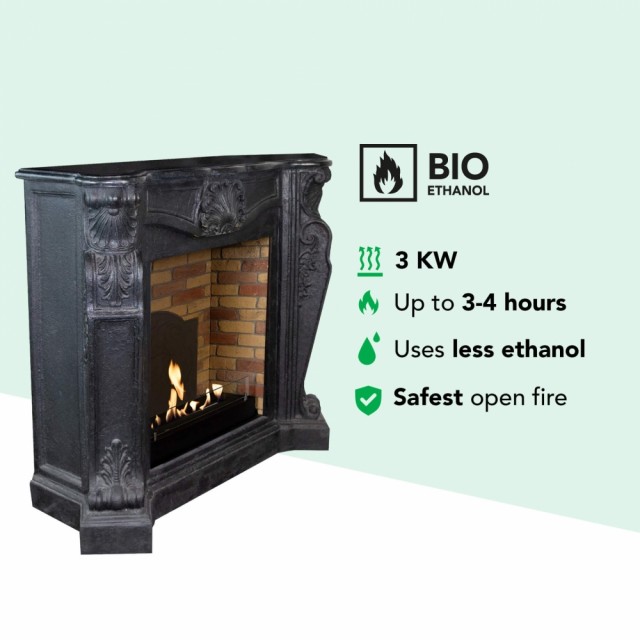 Den klassiske designen til denne peisen er veldig forfriskende i et moderne interiør. En nyoppført leilighet uten røykrør eller skorstein får karakter ved å legge til et klassisk eller vintage statement. Som dekorativ peis kan Louis kombineres med ulike elektriske eller bioetanol innebygde peiser.