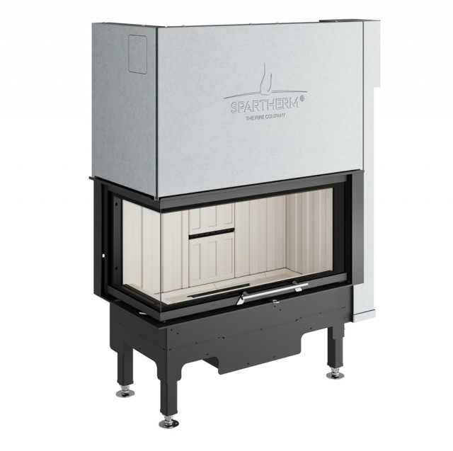 En flott peisinnsats med 2 sidig glass. Denne peisinnsatsen har en innvendig hevedør slik at den kan brukes som åpen eller lukket peis.