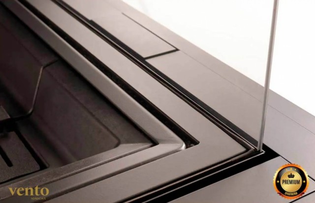 Brennkammeret er godt isolert med sorte Thermotte-plater og sikrer en god forbrennings temperatur. Innsatsen har en heve- og senkedør med integrert håndtak, en flott designmessig detalj. Glasset kan enkelt åpnes på tradisjonell måte for lettere rengjøring på innsiden.