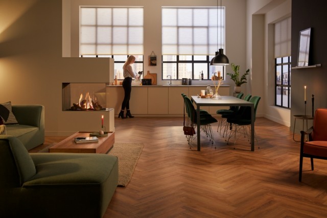 Standardversjonen av denne peisen har en brennerbase av trekubber og er utstyrt med dobbel brenner. Du kan også velge en integrert LED-base for å skape enda mer stemning. Trimline 83 RD finnes også i tunnelversjon. I tillegg leveres den med Ecomax-fjernkontroll, og du kan velge å legge til WiFi-betjening med Trimline Fires-appen