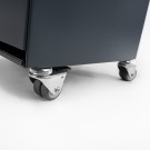 Sendzimir galvanisert stålplate | Pulverlakkering | Svarte lavasteiner | 4 svingbare hjul, 2 med brems | Herdet glass (sikkerhetsglass) | Piezo tenning