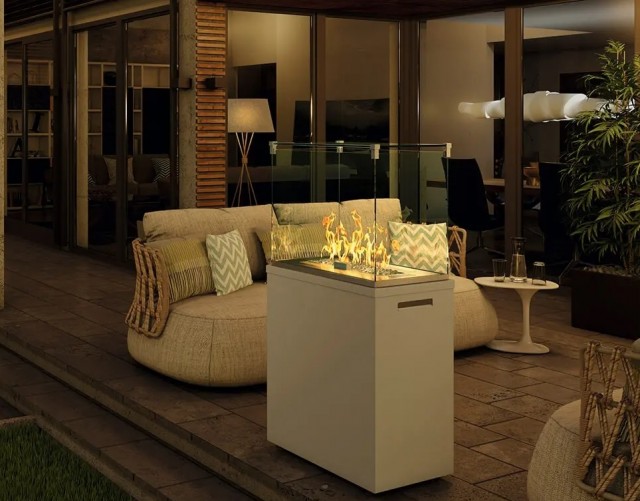 En annen modell som kombinerer varme og peisfølelse er Marino utepeis i matt sort. Denne varianten fungerer både som terrassevarmer og utepeis. Den matte, sorte overflaten gir et moderne uttrykk, samtidig som konstruksjonen er laget for utendørs bruk. I prosjekter der kunden ønsker et mer markant ildsted på terrassen, velger mange denne typen løsning fremfor en tradisjonell varmesøyle.