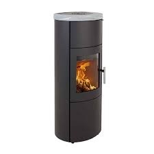 Skap hygge og varme i hjemmet med denne slanke, runde vedovnen.