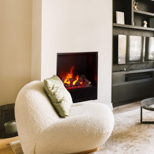 - Realistisk flammeeffekt: Kombinasjonen av vanndamp og LED-belysning skaper en naturtro flammeskjerm som ikke kan skilles fra en tradisjonell vedpeis.