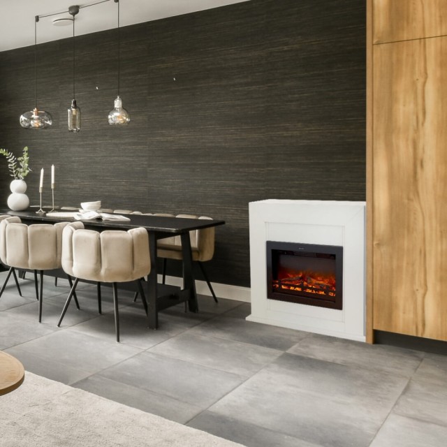 Velg mellom en elektrisk eller en bioetanol innebygd peis.